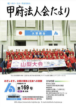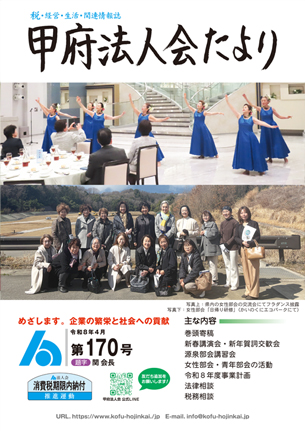 甲府法人会では、経営や税金に関する情報、地域の事業活動、会員企業などを紹介した「甲府法人会たより」を発行しています。